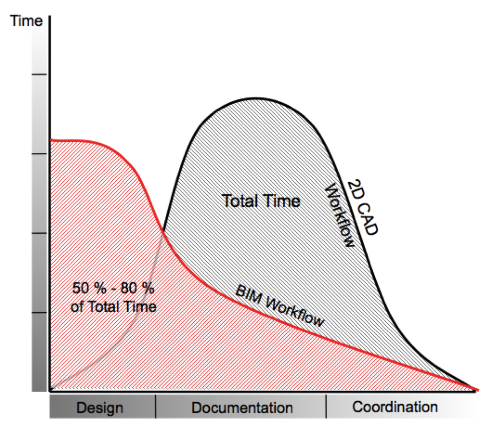 De la misma manera que en términos de producción optimizamos la relación de tiempo y esfuerzo en la curva de diseño gracias a BIM; es cierto que el mismo nos obliga a establecer mayor dedicación y restricciones de diseño en el inicio del proyecto que podemos ahorrarnos con CAD, donde esbozar y dibujar una primera idea del proyecto puede ser mucho más sencillo e intuitivo.